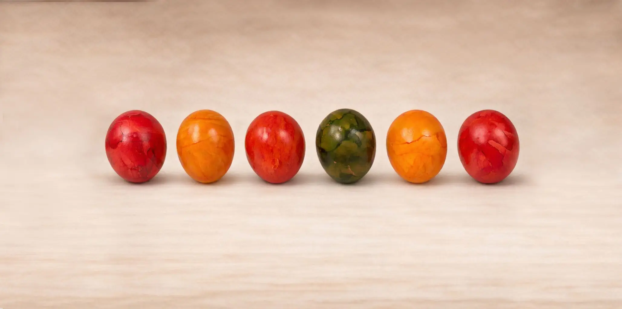 In unserer 100 % Bio-Eierfärberei kochen und färben wir von Oktober bis Ostern frische Bio-Eier. Nach dem Kochen werden die Eier in der sogenannten Rollfärbung bunt veredelt – so entsteht der charakteristisch marmorierte Farbauftrag, wobei jedes Ei eine eigene Farbe erhält. Für diesen Prozess verwenden wir ausschließlich Farbstoffe natürlichen Ursprungs.